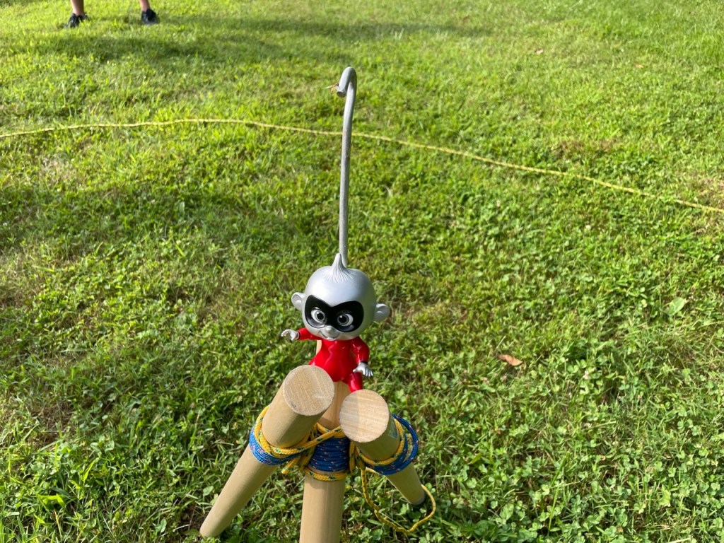 For this challenge, we had to remove the toy (what the picture is focused on) from the circle of rope without entering the circle ourselves. However, there was one added challenge: we had to use lashings to do it. Even still, this challenge was rather easy.