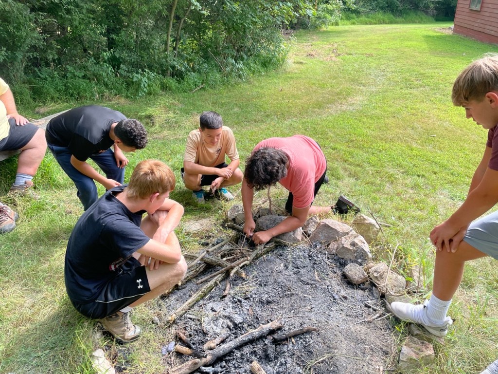 The challenge was simple on paper: build a fire and use it to boil pasta until it could be used to tie a sheet bend knot. However, Troop 85 is not full of excellent firebuilders, so building the fire took a while. Then came the part that sounded hardest: figuring out how long to boil the pasta for. However, even with this challenge, both teams managed it the first time.