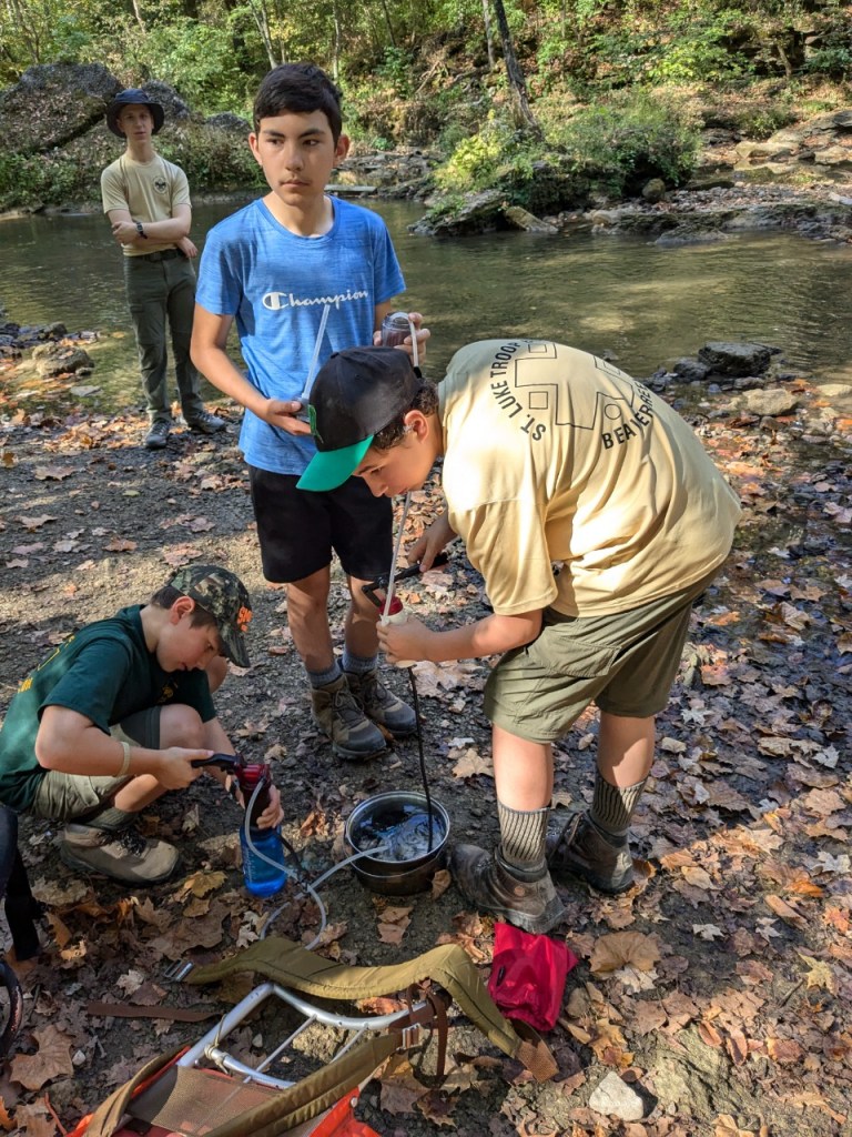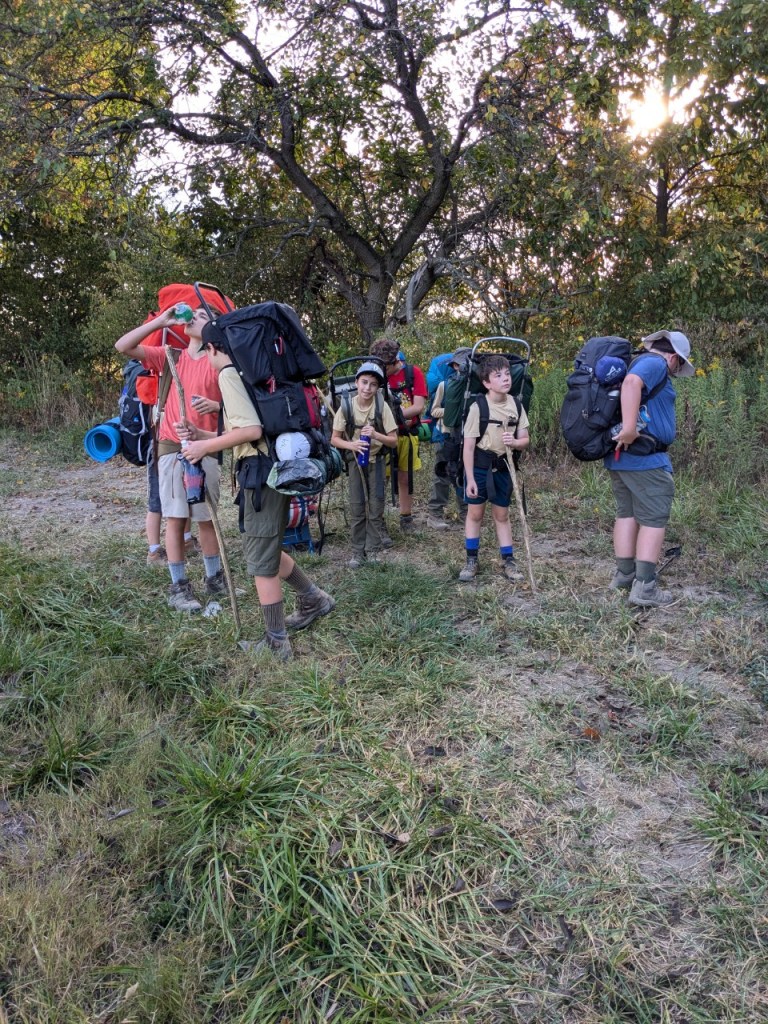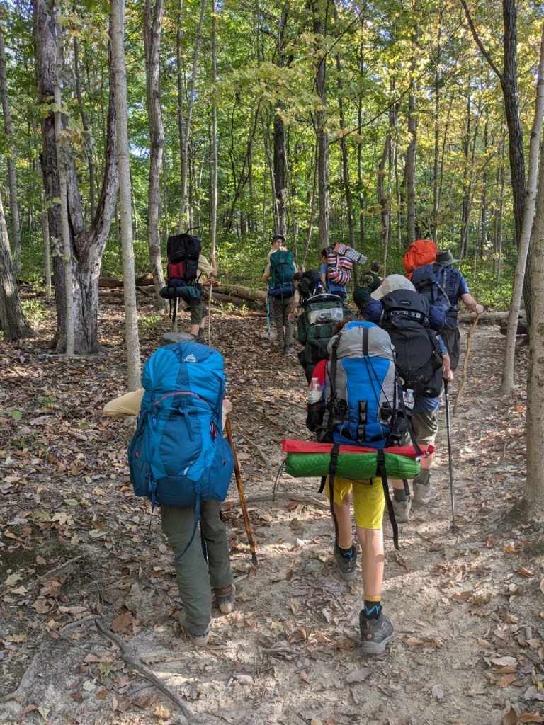 For this campout, we went on a backpacking trip, meaning that we went on a hike while carrying all of our gear. We hiked through John Bryan State Park, going through an 8-mile loop (although most of the scouts only carried their backpacks for the first 5 miles). The hike took most of the day, so we ate lunch on the trail. Both nights, we camped at the Fallen Timbers campsite at Camp Birch.